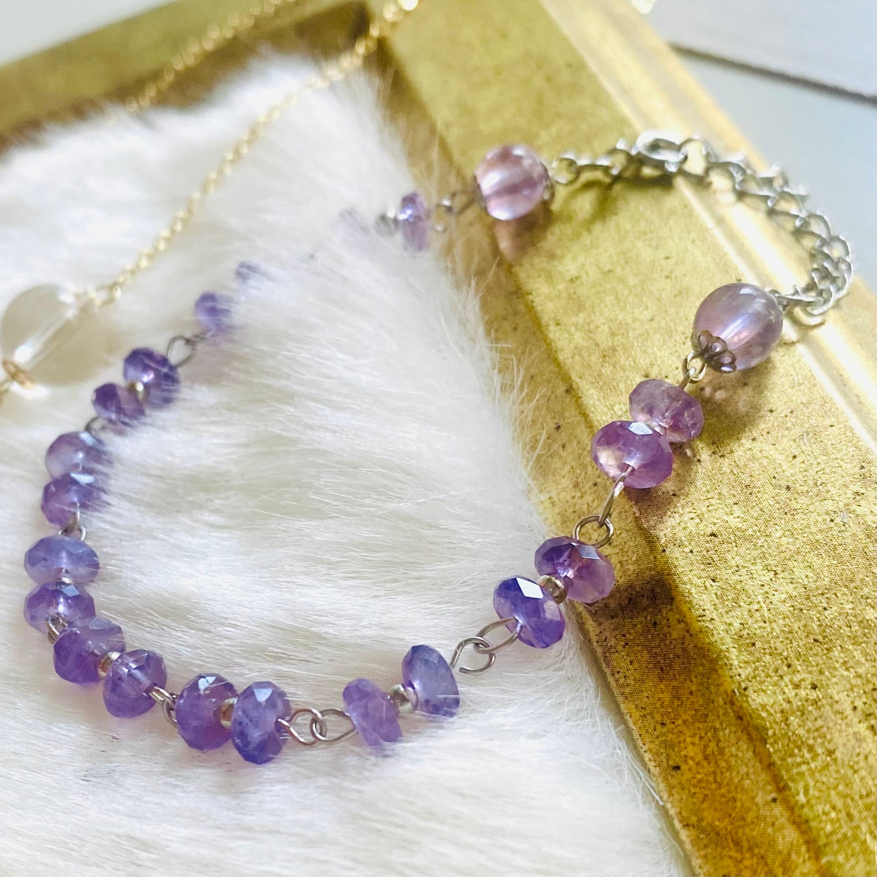 ラベンダーアメジストのボタンカットで制作したブレスレットです。