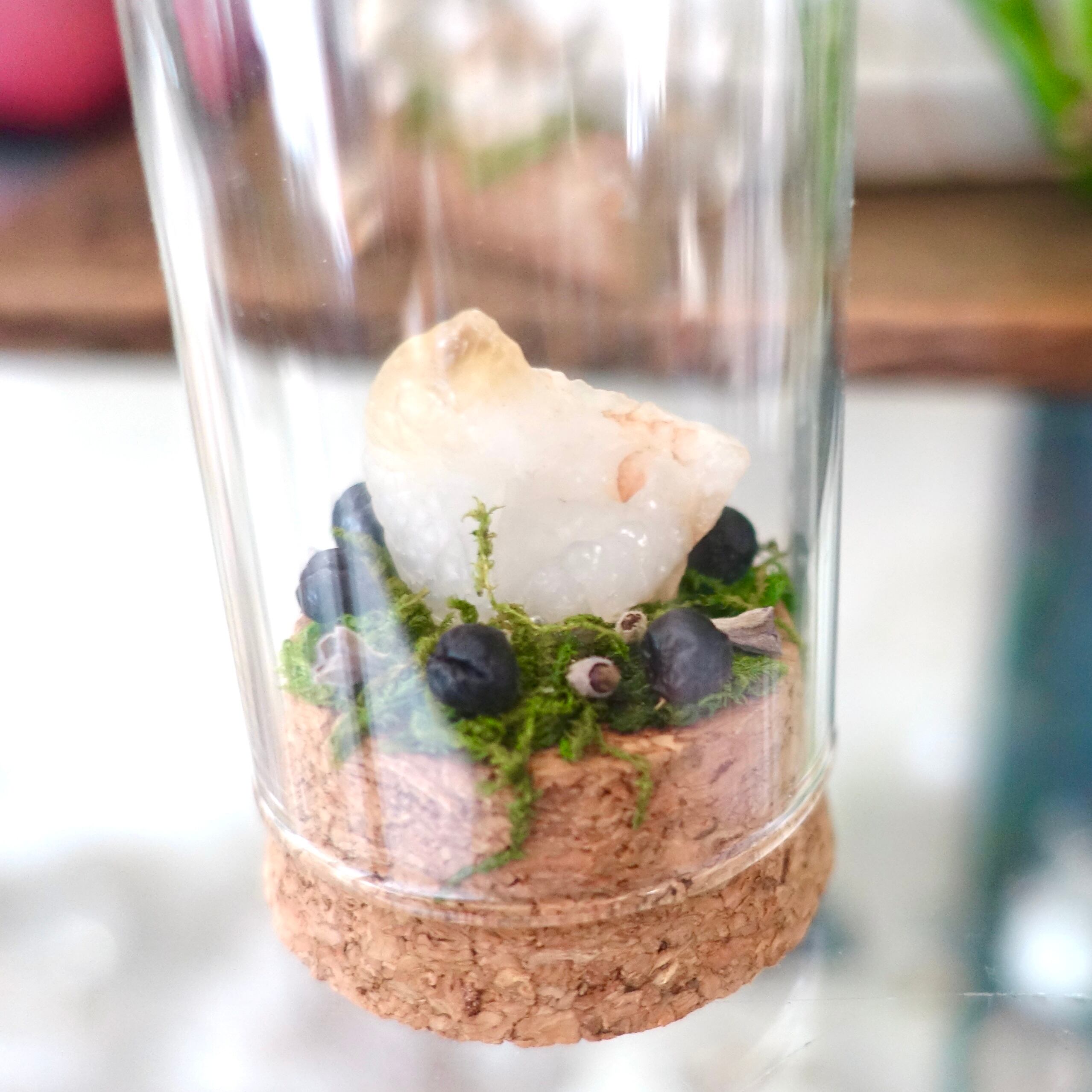 ラベンダーの房と黒い実(お花の名前をど忘れ中です)とプリザーブドフラワーの苔で飾りました。