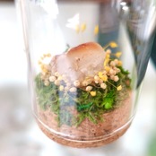 プリザーブドフラワーの苔とイエローのかすみ草で飾りました。