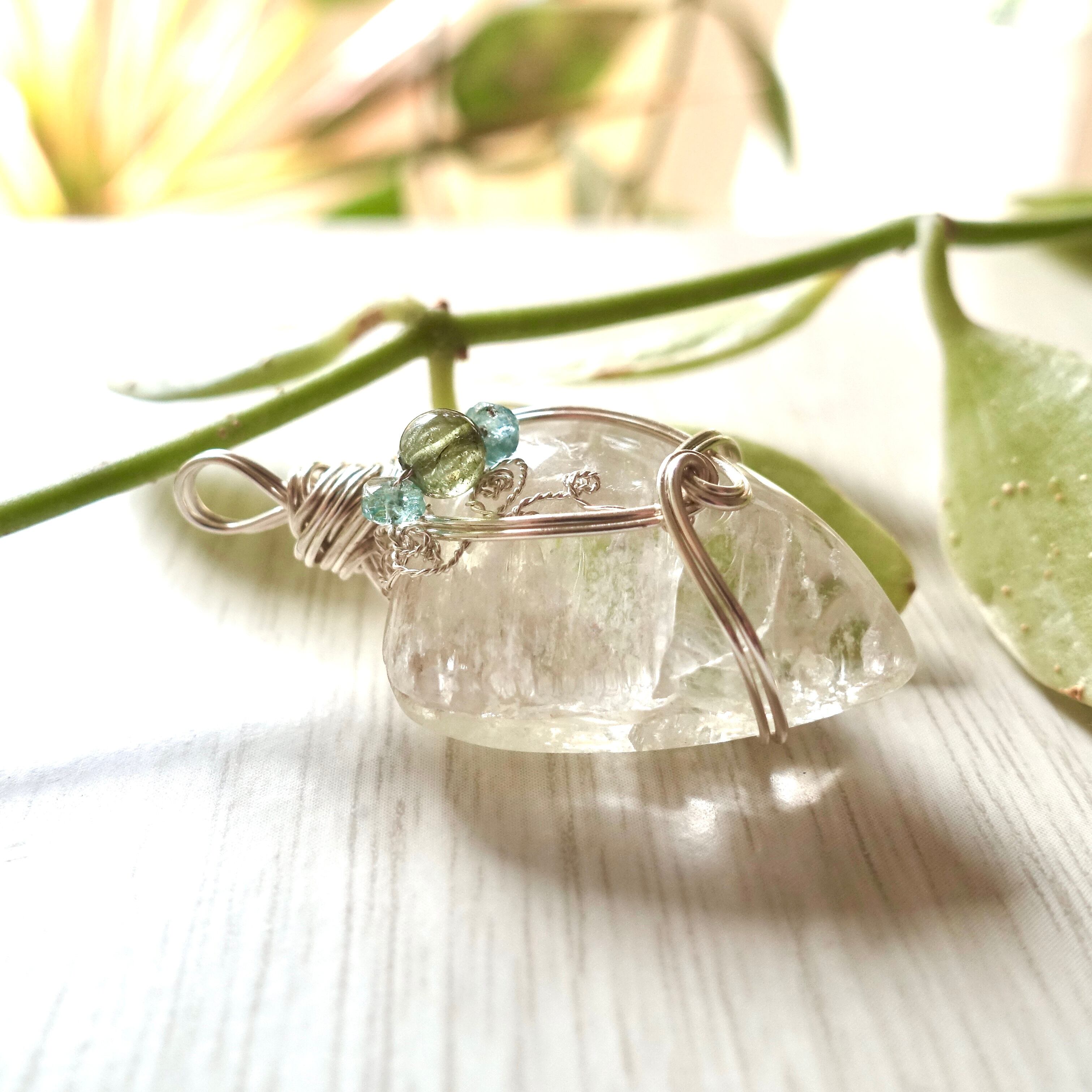 清らかな光をより強調するためにシルバーのワイヤーで巻きました。
