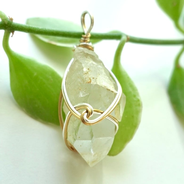 ゴールドとシルバーのワイヤーで巻いたタンザニア産モンドクォーツのPTです。